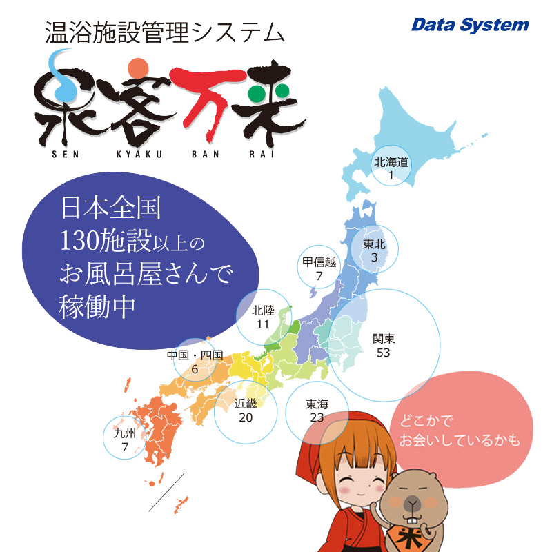 商業施設、温浴施設、道の駅、福祉施設など、全国1500件以上の施設で活躍しております。